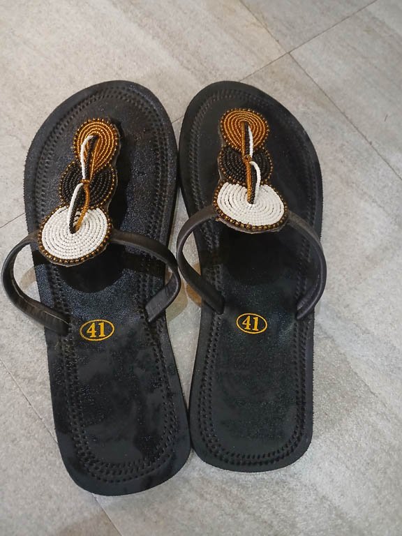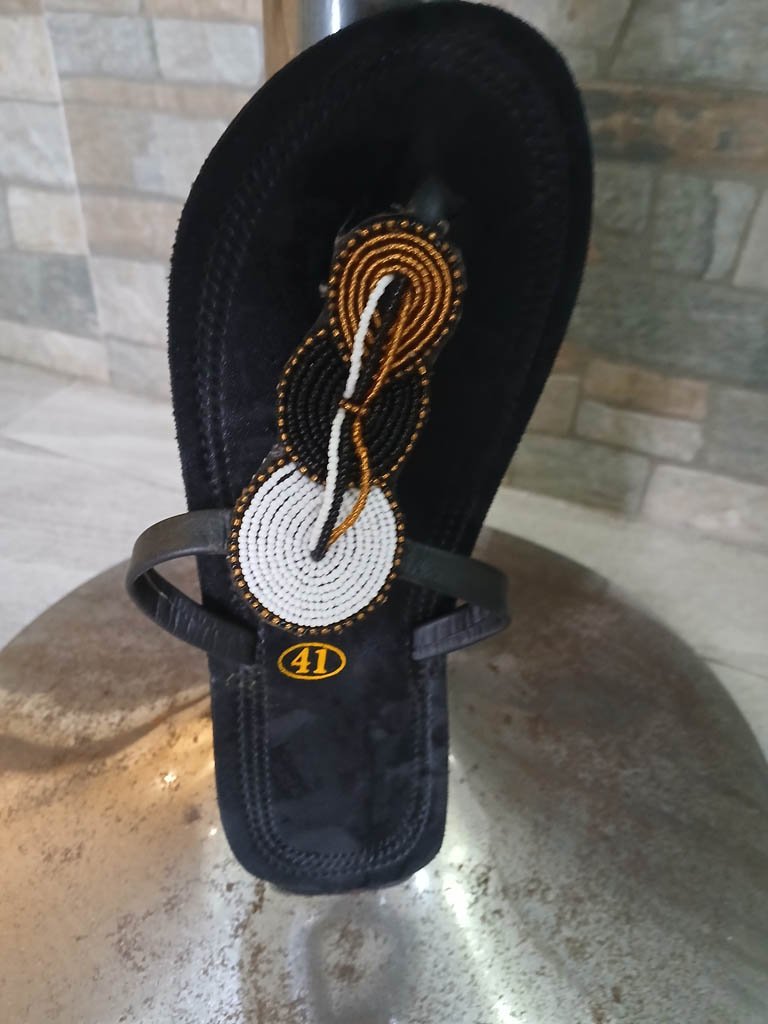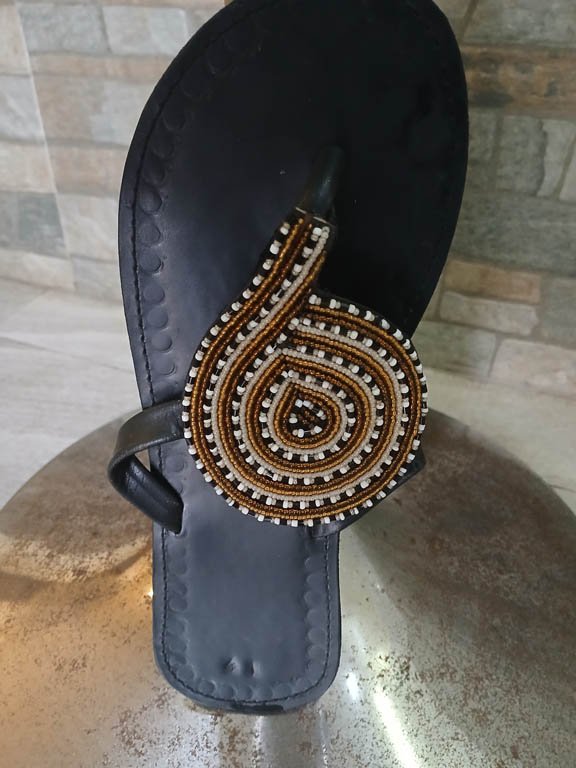 Sandales artisanales au style Masaï, légères et élégantes pour un usage quotidien.